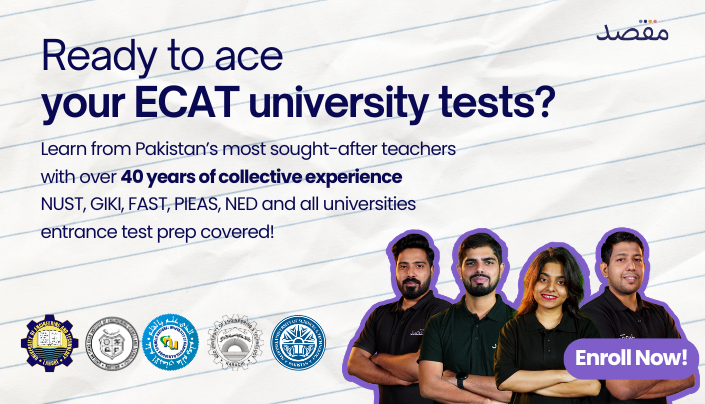 Join Maqsad’s ECAT batch, designed for high-scoring students aiming for UET, NUST, FAST, PIEAS, GIKI & more. With live classes, MCQs and more, secure your seat in Pakistan's top engineering universities!